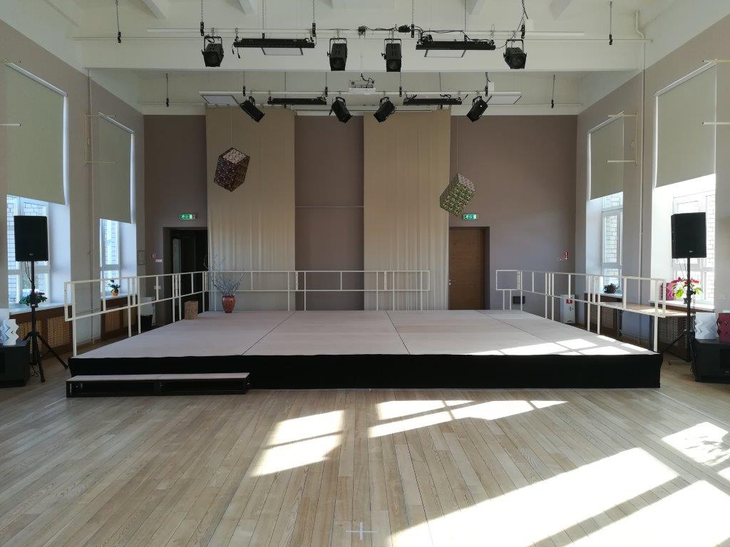 Wir möchten euch das Bild unseres Kunden aus Riga nicht vorenthalten. Mit weißen Geländern passt die Bühne perfekt in den hellen Raum.