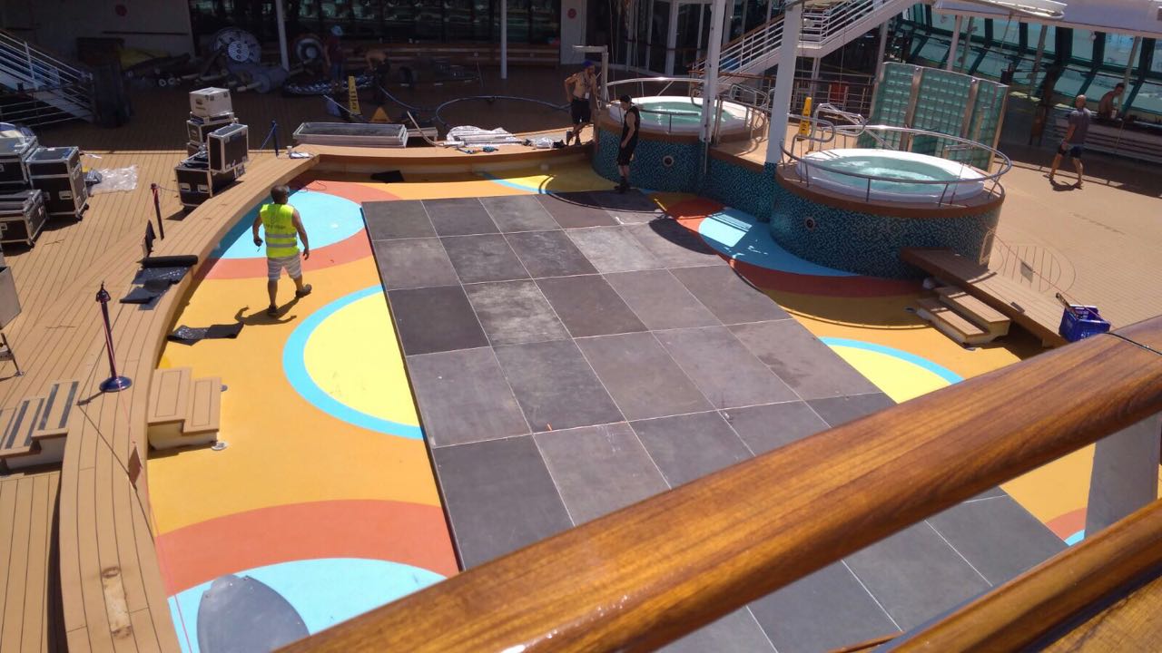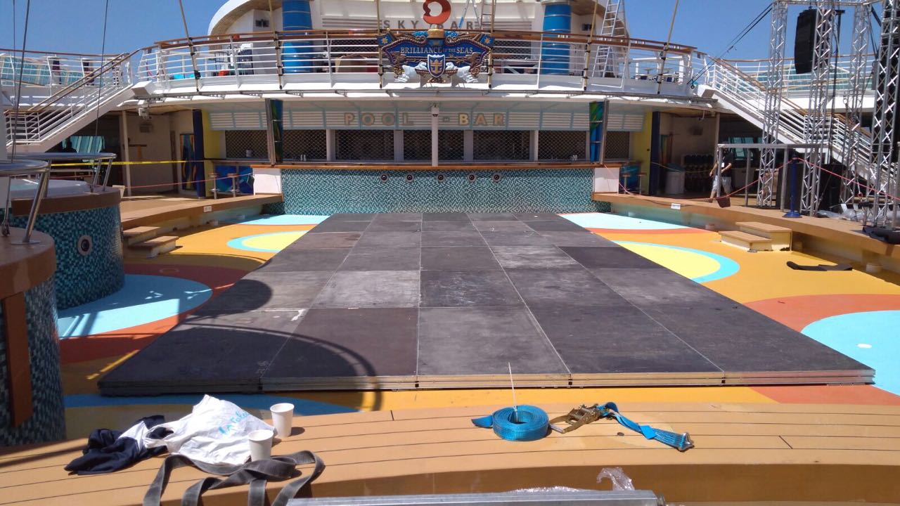 Unser spanischer Partner APQ Stage Iberica stattete einen Cruiser mit einer Bühne aus. Die Fahrt geht von Barcelona nach Ibiza. Schiff ahoi!